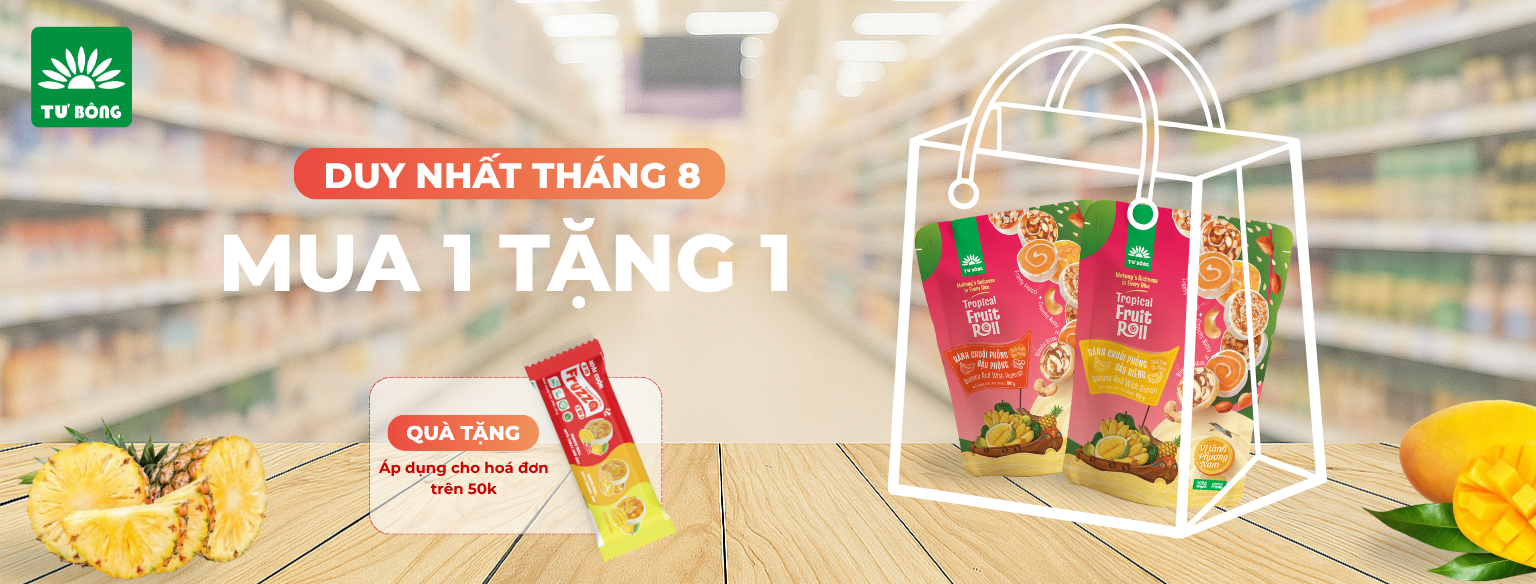 Gói trái cây cuộn thập cẩm Tư Bông 500g gồm 8 loại: – Bánh chuối phồng đậu phộng – Bánh chuối phồng hạt điều – Bánh chuối phồng sầu riêng – Bánh chuối phồng hạt mè – Bánh khóm cuộn – Bánh mãng cầu cuộn – Bánh xoài cuộn – Me cuộn bánh phồng
