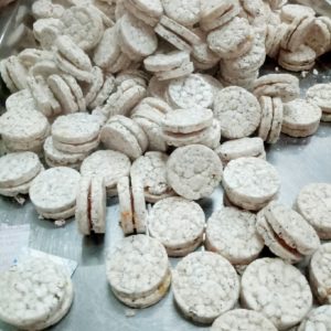 Gạo lứt được làm bánh bằng phương pháp vật lý không qua chiên sấy nhưng vẫn giòn giụm, kẹp với mứt trái cây được cô đặc trong nồi chân không. Bánh gạo lứt kẹp mứt là tổ hợp từ cái giòn rụm của cốm gạo lứt, độ dẻo và vị chua ngọt của mứt thơm, mứt cam hoặc mứt mãng cầu.