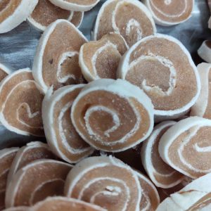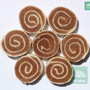 Được cách tân từ món mứt truyền thống, trái cây cuộn Tư Bông là sản phẩm nức tiếng ở “xứ sở sen hồng” Đồng Tháp. Bánh Trái Cây Cuộn là loại bánh kết hợp giữa các loại mứt trái cây được sên dẻo theo công thức riêng, sau đó được trải lên một chiếc bánh phồng nếp nướng giòn và cuộn lại. Với lớp vỏ bánh phồng nếp giòn bao bọc nhân mứt trái cây bên trong như chuối, khóm/thơm, mãng cầu xiêm, xoài, me…,