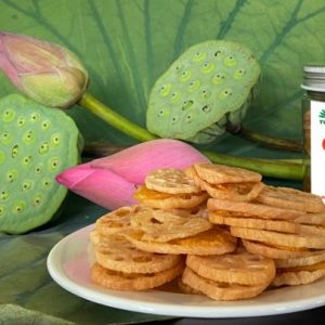 Củ Sen Kẹp Mứt là một sản phẩm ăn vặt ưa thích cho giới trẻ bởi nó là sự kết hợp giữa củ sen sấy giòn rụm và mứt chua ngọt. Đây là món ăn vặt vừa ngon lại vừa lành. Ngon bởi sự phù hợp khẩu vị của đại đa số người trẻ, Lành bởi quy trình sản xuất từ trái thơm tươi – không dùng chất bảo quản – được nấu trong nồi chân không.