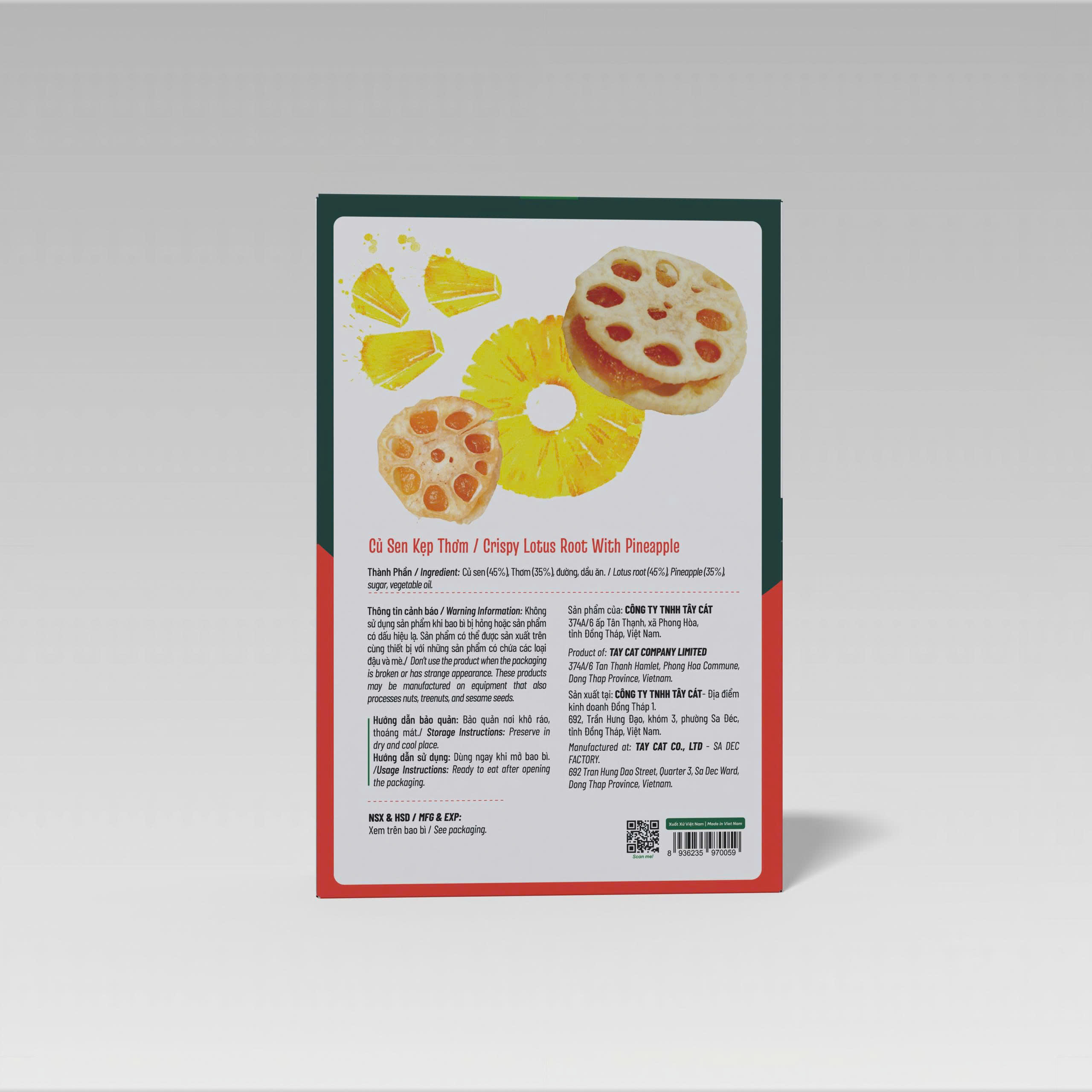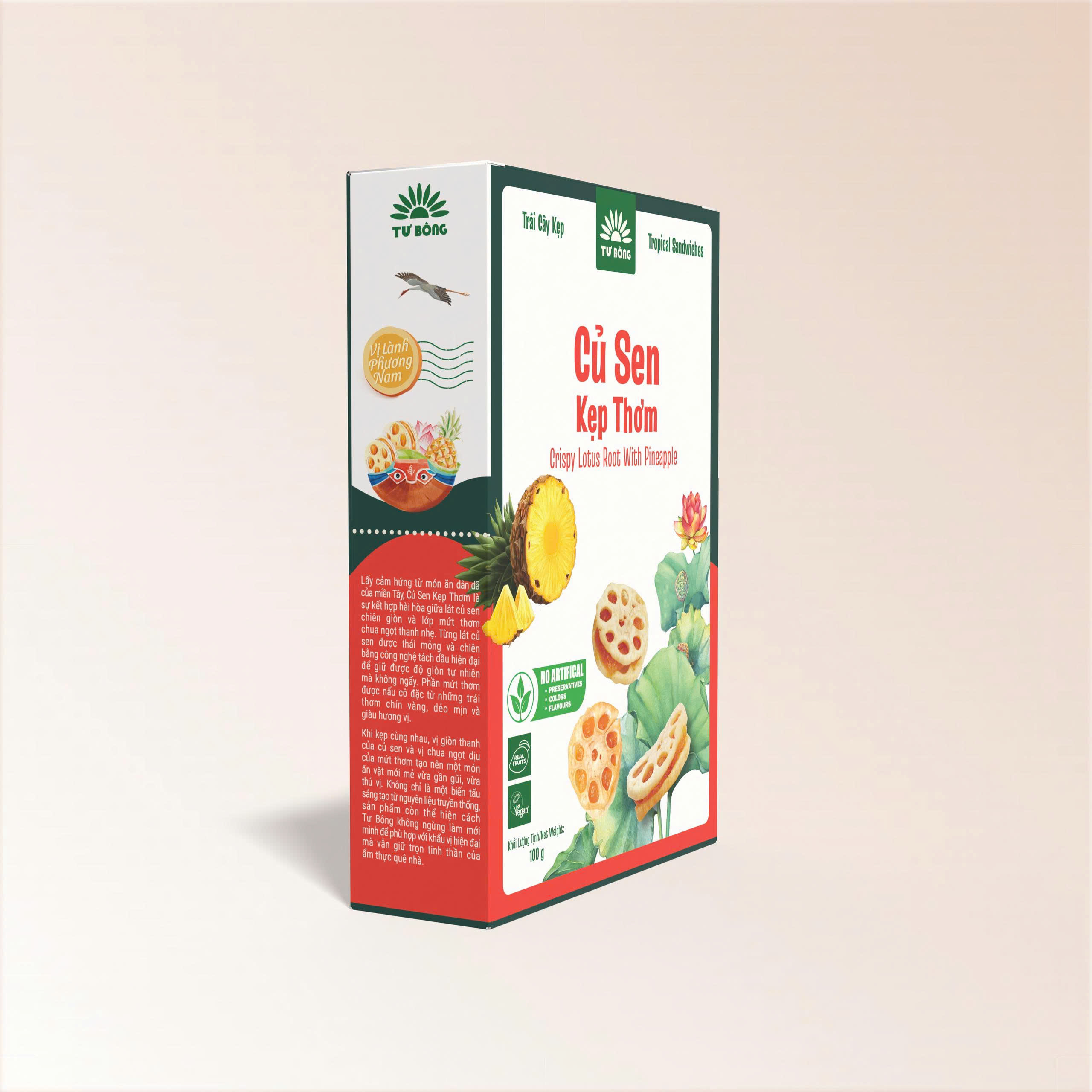 Củ Sen Kẹp Mứt là một sản phẩm ăn vặt ưa thích cho giới trẻ bởi nó là sự kết hợp giữa củ sen sấy giòn rụm và mứt chua ngọt. Đây là món ăn vặt vừa ngon lại vừa lành. Ngon bởi sự phù hợp khẩu vị của đại đa số người trẻ, Lành bởi quy trình sản xuất từ trái thơm tươi – không dùng chất bảo quản – được nấu trong nồi chân không.