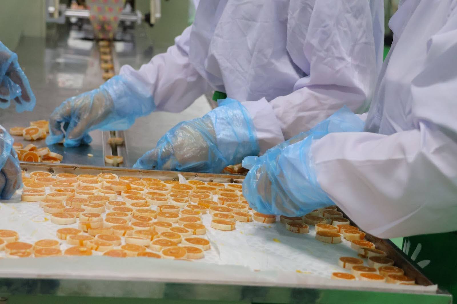 - Sơ chế trái cây: cắt lát, tách vỏ, loại bỏ hạt, rồi sấy hoặc nấu chín để cô đặc thành hỗn hợp nhân.